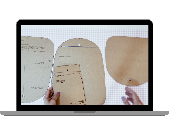 Você vai ter em mãos as modelagens que utilizo no curso para imprimir nos tamanhos M e G.