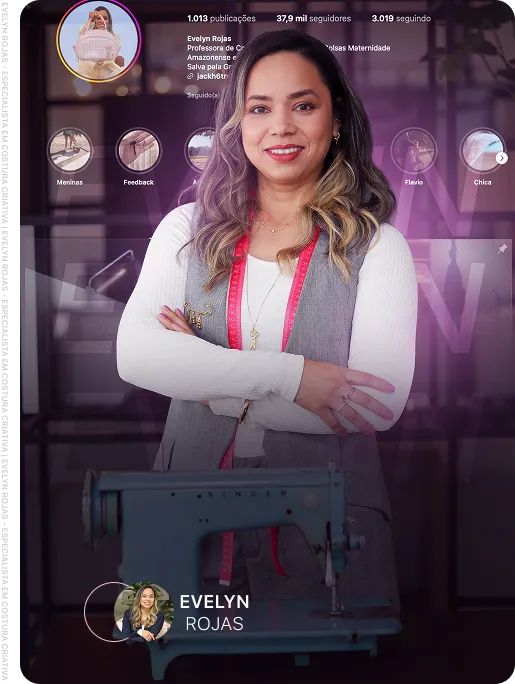 Evelyn Rojas é especialista em costura criativa e, há mais de 10 anos, ajuda mulheres a descobrirem no artesanato uma forma de independência, renda e realização pessoal.